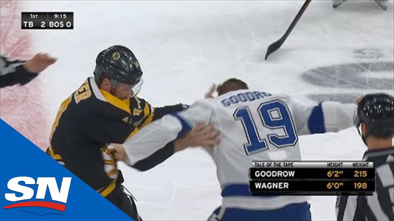 Watch as Barclay Goodrow and Chris Wagner drop the gloves during the first period of a game between the Tampa Bay Lightning and Boston Bruins. ----------------------------------------------