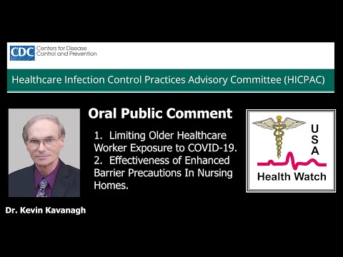 Kevin Kavanagh, MD, MS public comment to CDC's HICPAC meeting March 5, 2020 regarding: 1. Limiting Older Healthcare Worker Exposure to COVID-19. 2. Concerns Regarding Effectiveness of Enhanced Barrier Precautions In Nursing Homes.